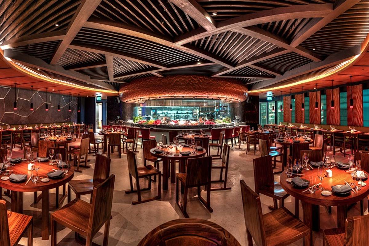 Novikov arrived in London in 2011 and established the Russian restaurateur Arkady Novikov as the most important post-Soviet name in European dining — a Mayfair triple-concept of Asian, Italian, and the Lounge that defined a decade of oligarch-era power dining. The Dubai outpost at Sheraton Grand Hotel Trade Centre is a like-for-like transplant: two distinct restaurants under one roof (Asian and Italian), connected by a shared bar and a lounge space, with an executive-chef bridge — Shane Macneill, Glaswegian-trained, London-seasoned — running the kitchen across both rooms. It is not a fusion restaurant; it is two restaurants, each with its own menu, its own wine list, and its own service team, joined by one door.